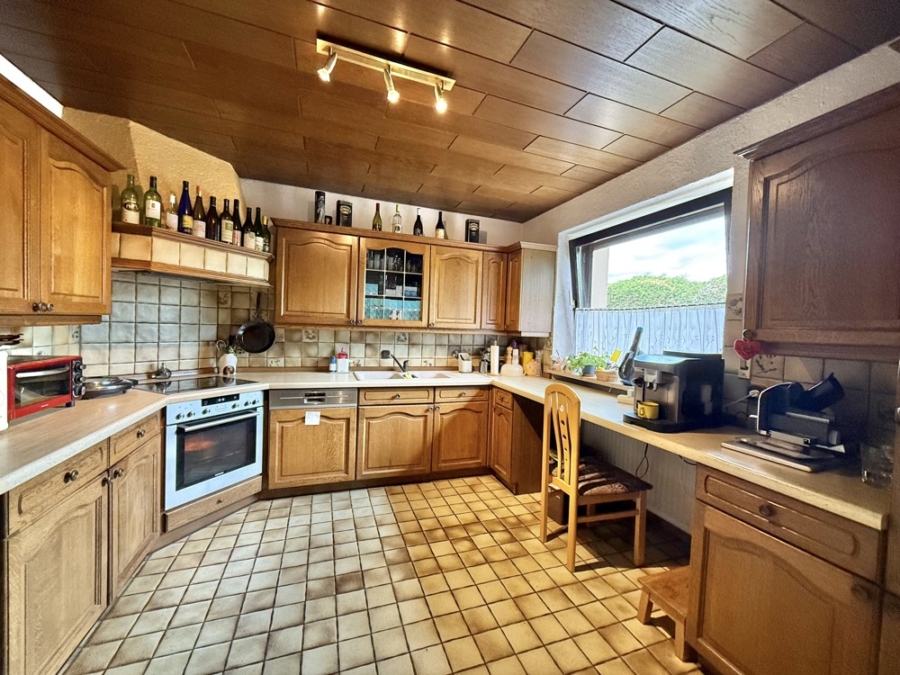 - Küche: Links vom Essbereich liegt die geräumige Küche mit einer Einbauküche und angrenzender Speisekammer.