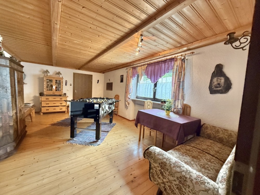 - Wohnzimmer: Rechts vom Essbereich befindet sich das lichtdurchflutete Wohnzimmer, das durch einen zusätzlichen Kachelofen wohlige Wärme in alle Räume des Erdgeschosses verbreitet.