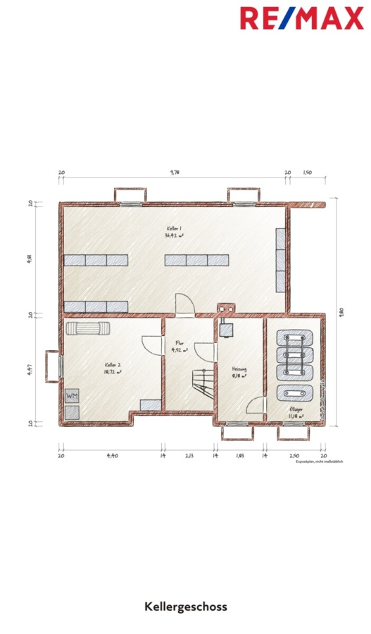 Das Haus ist voll unterkellert. Hier befinden sich der Heizraum, der Waschkeller sowie ein weiterer großer Raum, der sich hervorragend als Sport- oder Hobbyzimmer eignet. Von dort, wird auch der Kachelofen im Erdgeschoss, beheizt.