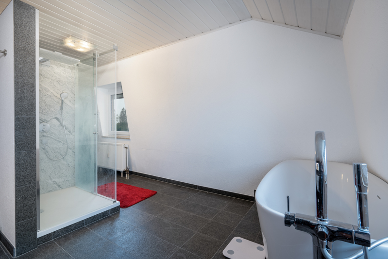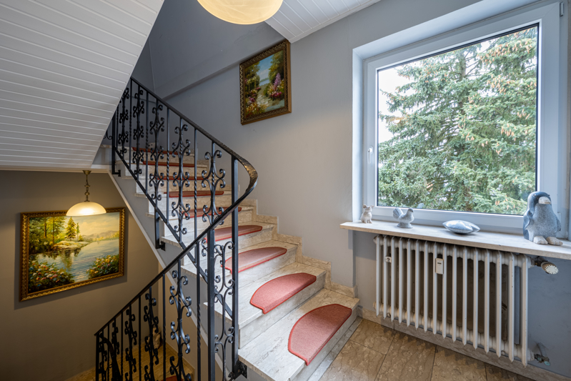 Im Ober- und Dachgeschoss ist großzügiges Wohnen auf jeweils ca. 200 m² (Grundfläche) möglich. Die beiden Wohnungen werden derzeit vom Eigentümer genutzt. Dieser hat ab 2011 die Böden und Bäder exklusiv erneuert, so dass sich die beiden Wohnungen in einem sehr guten Zustand präsentieren.