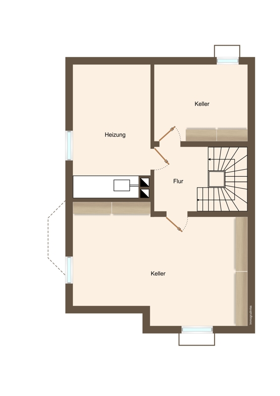 Das Haus ist voll unterkellert. Hier ist zum einen die neue Technik untergebracht, aber auch ein ca. 31 m² großer und beheizbarer Hobbykeller.