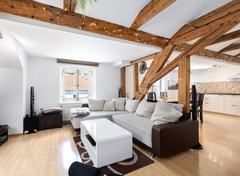 - Ringdachstuhl im Dachgeschoss freigelegt