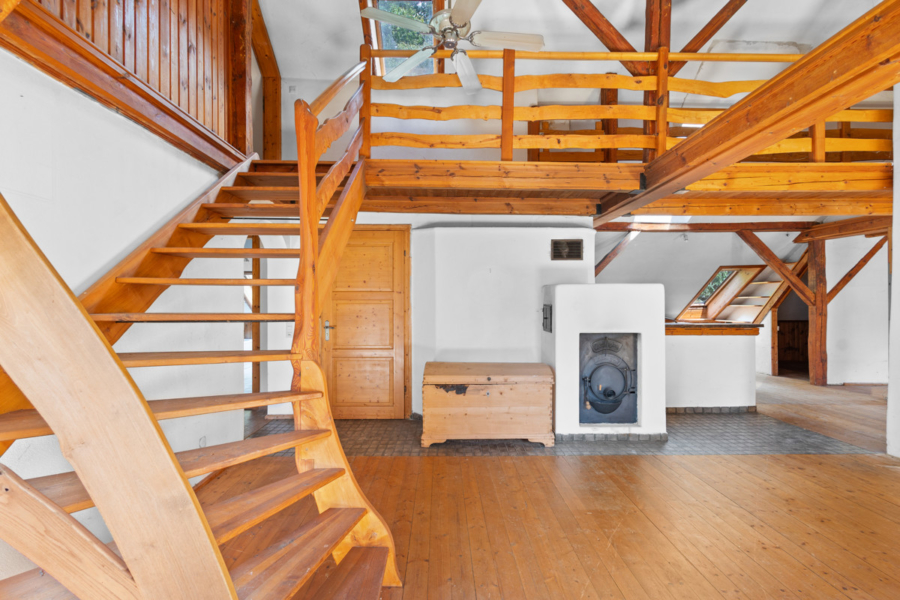 - Heizung: Beheizung sämtlicher Räume durch Schwedenöfen; im Erdgeschoss, 2. Obergeschoss und Dachgeschoss sind jeweils leistungsfähige Kachelspeicheröfen installiert. Die Ofenheizung sorgt für behagliche Wärme und unterstreicht den traditionellen Charakter des Hauses.