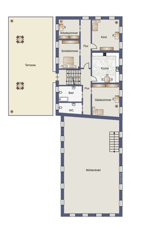 ein großzügiger Mühlentrakt mit ca. 580 m² Nutzfläche,