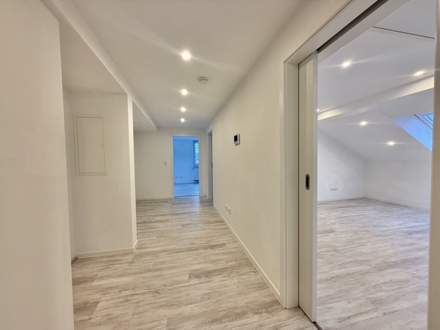 Im Jahr 2020 komplett sanierten Dachgeschoss, erwartet Sie eine elegante, offene Wohn-Ess-Küche mit Balkon, zwei helle Schlafzimmer und ein großzügiges Badezimmer, das nicht nur über eine Fußbodenheizung, sondern auch über eine begehbare Dusche und eine Badewanne verfügt.