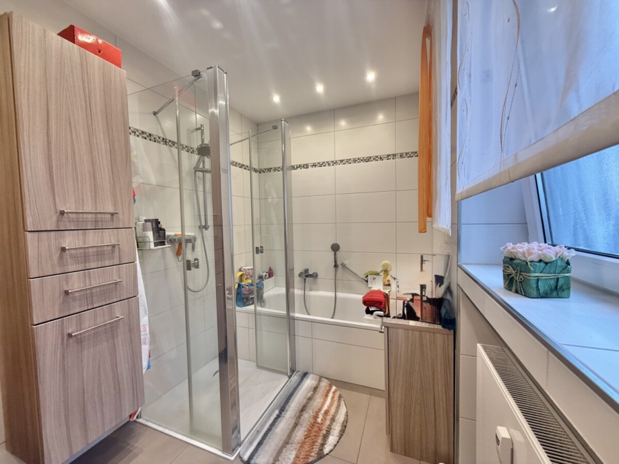 - Erdgeschoss: Bad erneuert mit begehbarer Dusche und Badewanne