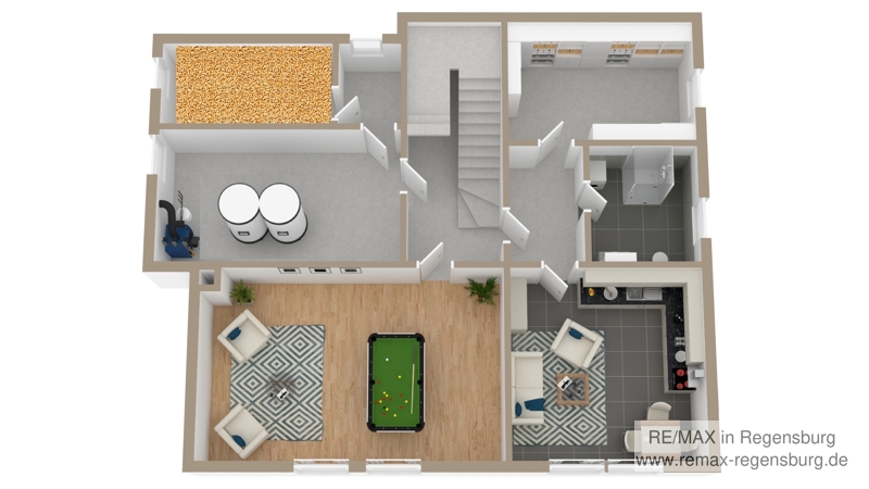 Im Untergeschoss sind zudem der Heizungskeller mit einer Pelletsheizung, ein Pelletslagerraum, sowie ein Kellerraum untergebracht.