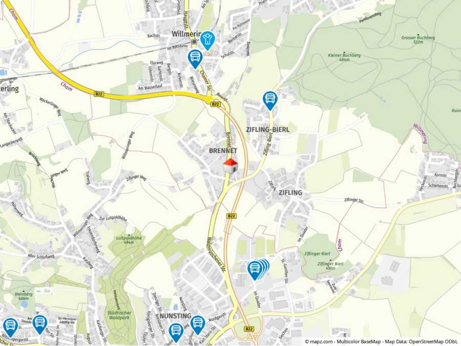 Die Umgebung ist geprägt von einer harmonischen Mischung aus Natur und Nahversorgung. In unmittelbarer Nähe finden Sie mehrere Spielplätze, die sich hervorragend für Kinder eignen. Für die Freizeitgestaltung ist auch der Park um die Ecke fußläufig erreichbar. Ein wesentlicher Vorteil ist die gute Anbindung an den öffentlichen Nahverkehr mit der Bushaltestelle Willmering, Zifling, Ort, die nur rund fünf Gehminuten entfernt ist. Über diese sind auch größere Städte in der Umgebung gut erreichbar, obwohl die abendliche Unterhaltung und Kulturangebote vor Ort gering sind.