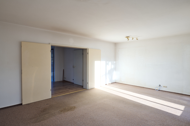 Hier lädt das große Wohnzimmer zum Verweilen ein und bietet einen direkten Zugang durch eine große Flügeltüre zum Essbereich, direkt daneben befindet sich die separate Küche.