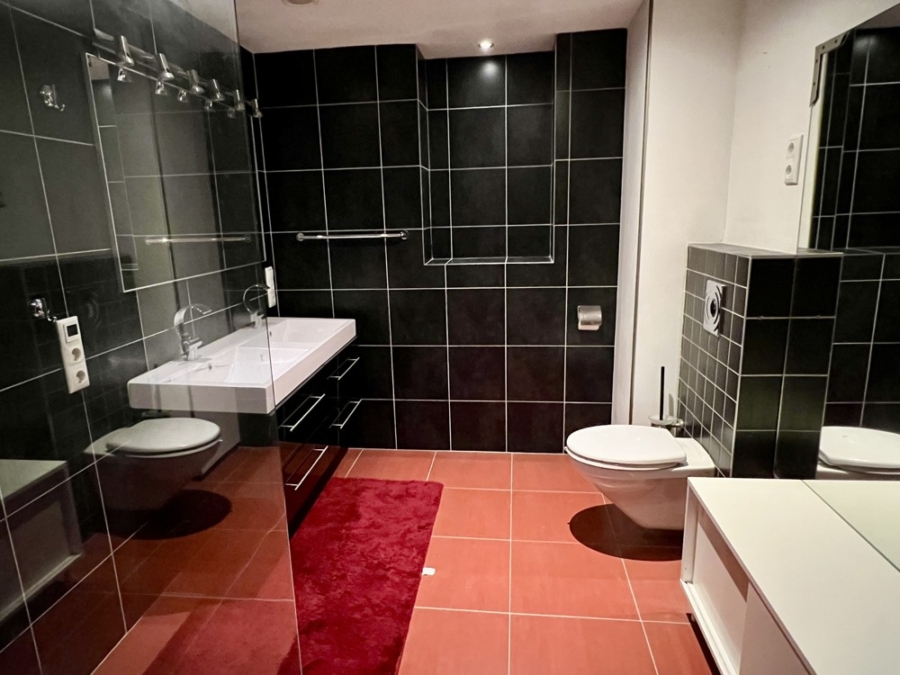 • Badezimmer mit großer Dusche und Doppelwaschbecken