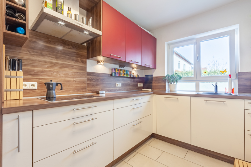 Inklusive: Eine schöne Einbauküche mit allen wichtigen Geräten.