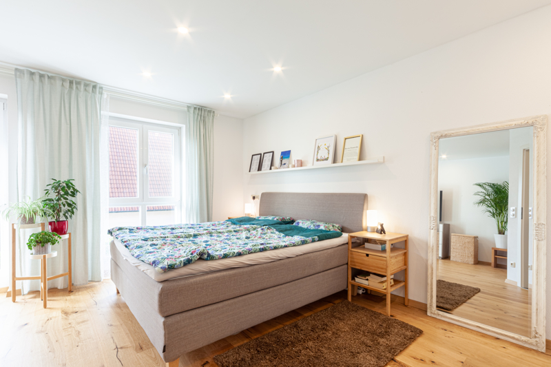 Im Obergeschoß befindet sich das 2020 modernisierte Elternschlafzimmer mit Deckenspots und Vollholzparkettboden, außerdem noch ein weiteres Zimmer als Ankleide, Büro oder zusätzliches Kinderzimmer geeignet. Top-Detail: Tageslichtbad mit Dusche, Wanne und Toilette.