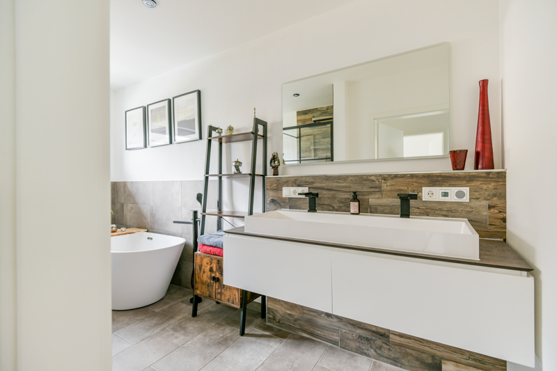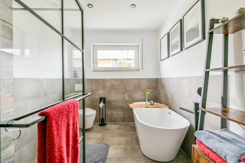 Das sehr geschmackvolle Bad in tollem Design ist ein echtes Highlight- pures Spafeeling im eigenen Zuhause!