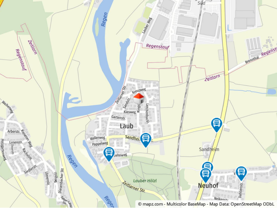 Der Ortsteil Laub der Gemeinde Zeitlarn liegt verkehrsgünstig an der Bundesstraße B15 und der Autobahn A93 und verfügt über regelmäßigen Busverbindungen und in das stadtnahe Regensburg. Das Gemeindegebiet bietet eine sehr gute Infrastruktur mit allen erforderlichen Einrichtungen, wie Grund- und Mittelschule, Kindergarten, Kinderhort, Ärzte, Einkaufsmöglichkeiten und vielen kleinen und mittelständigen Unternehmen. Das beliebte Naherholungsgebiet mit seinem Regentalweg und den ausgedehnten Flussufern ist ideal für Wanderungen, Radtouren und Kanufahrten. Von zahlreichen Vereinen bis zu verschiedenen Ortsverbänden hat man die Möglichkeit die Freizeit nach Vorlieben zu gestalten.