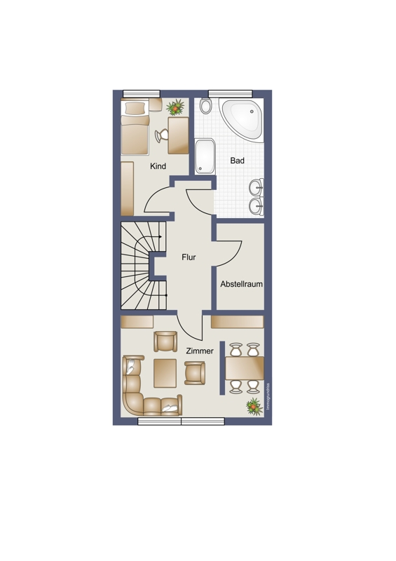 Das Haus ist nicht unterkellert, bietet jedoch auf jeder Etage einen Abstellraum.