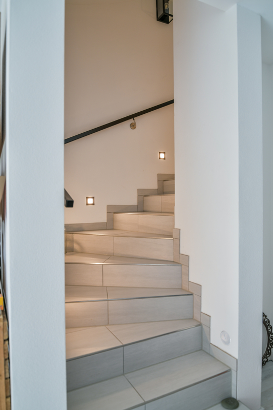 Wandleuchten mit Bewegegungssensoren im Flur, Eingang und den Treppenaufgängen sind komfortabel und stromsparend.
