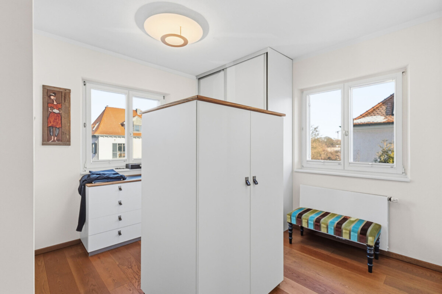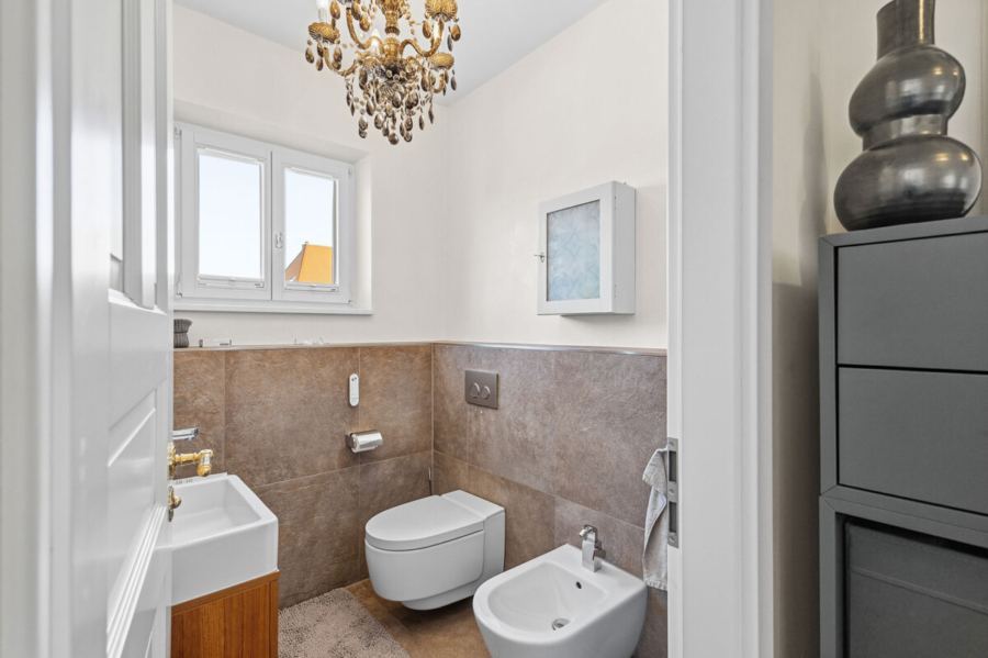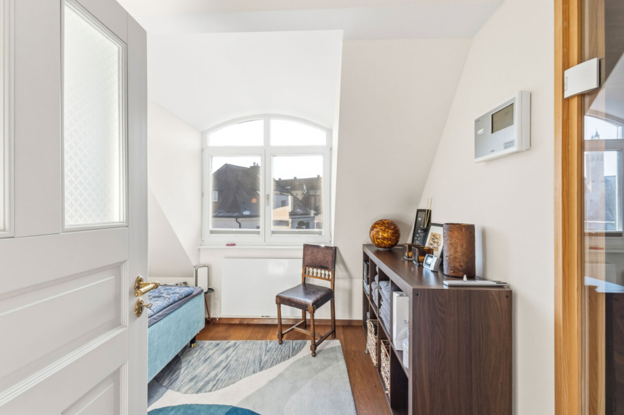 Das Dachstudio eröffnet zusätzliche Möglichkeiten – ob als Atelier, Arbeits- oder Rückzugsort – und beherbergt zudem die integrierte Sauna, die exklusives Wohnen mit privatem Wellnesskomfort verbindet.