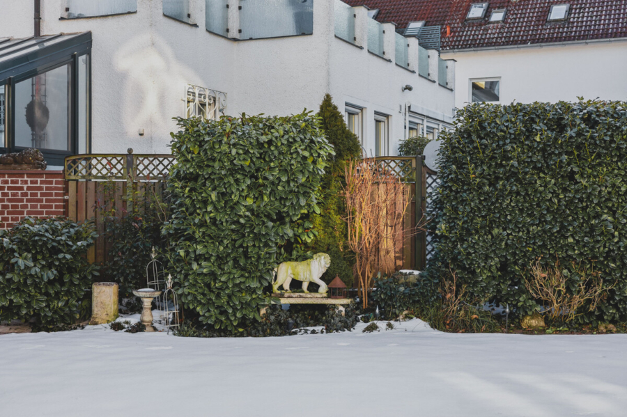 Der gewachsene Garten ist südlich ausgerichtet und bietet ein Höchstmaß an Privatsphäre. Eine realisierbare Planung