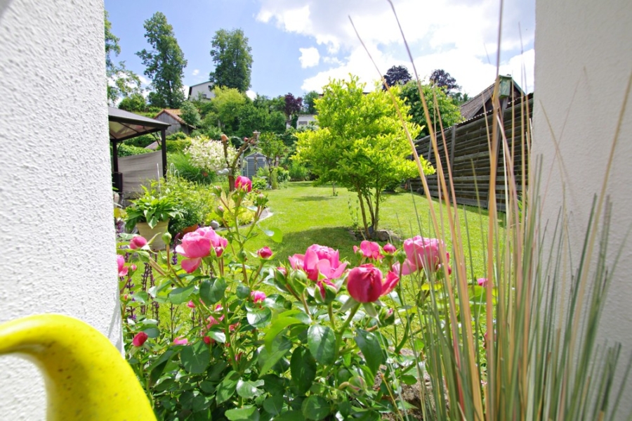 - | großzügiger, liebevoll und zugleich pflegeleicht angelegter sonniger Garten mit Terrasse