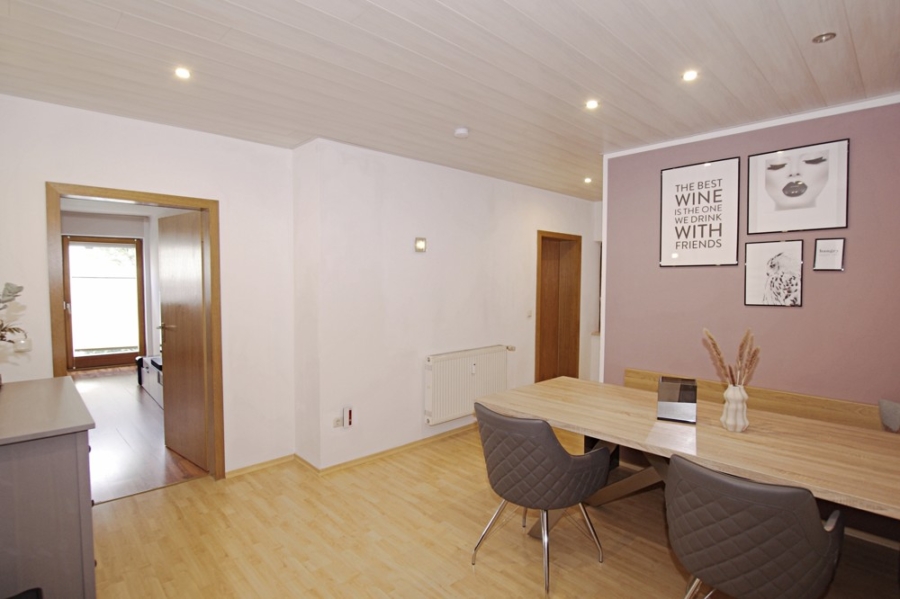 Die Wohnung im Erdgeschoß bietet Ihnen ein großzügiges Wohnzimmer mit Terrasse mit Platz zum Feiern und Grillen, eine geräumige Küche, eine zusätzliche Essdiele, ein Schlafzimmer, ein weiteres Schlafzimmer, welches derzeit als begehbarer Kleiderschrank genutzt wird, sowie ein Duschbad mit Toilette, sowie einen kleinen Abstellraum.