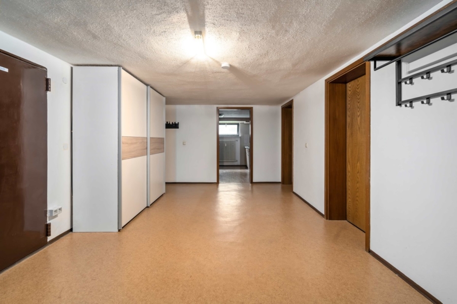 Das Untergeschoss des Hauses überzeugt durch seine Vielseitigkeit: Neben dem Heizungsraum und der Waschküche stehen Ihnen mehrere großzügige Abstell- und Hobbyräume zur Verfügung – ideal als Werkstatt, Fitnessraum oder praktischer Stauraum für Haus und Garten.