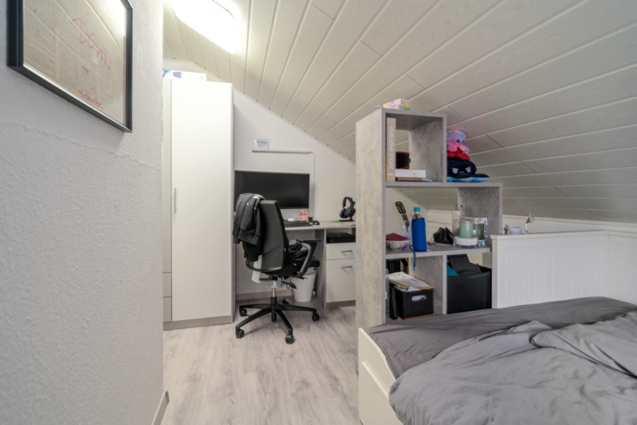 Im Dachgeschoss befindet sich eine eigenständige Wohneinheit mit ca. 84 m² – ideal für Kinder, Großeltern oder zur Vermietung. Diese Ebene wurde im Jahr 1994 ausgebaut und bietet heute ein autarkes Wohnumfeld mit hohem Komfort und Privatsphäre.
