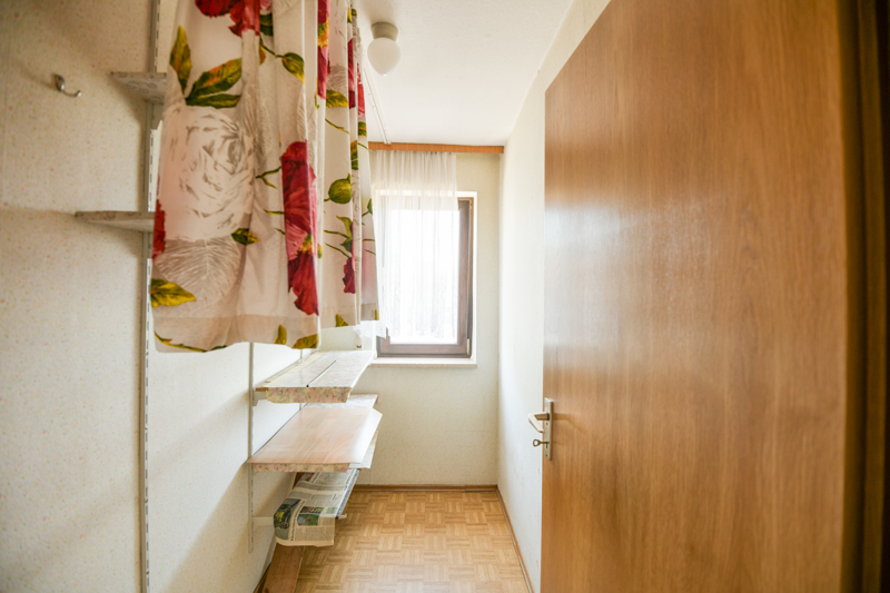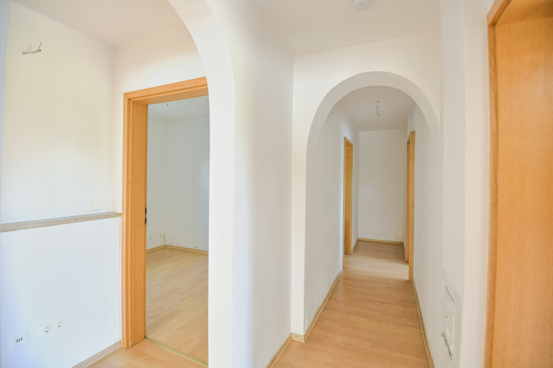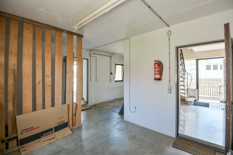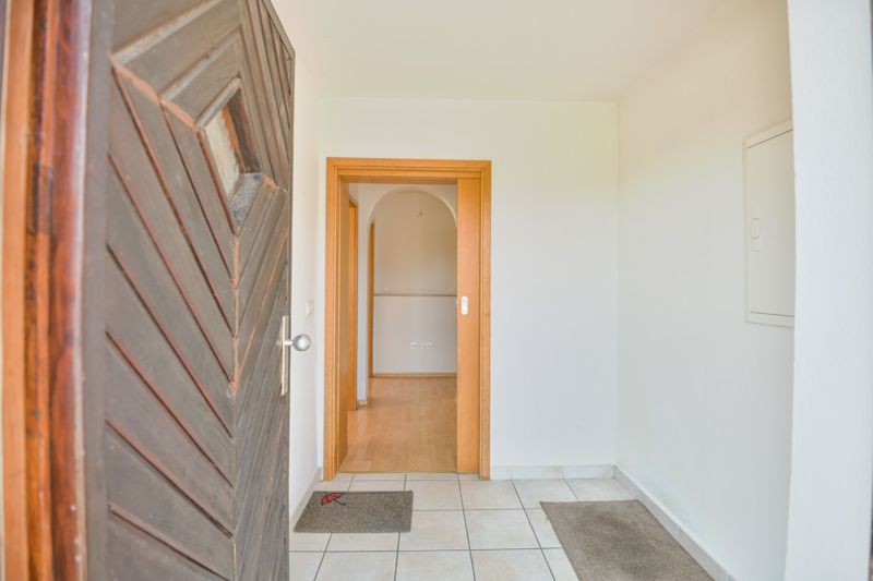 Die rechte Eingangstüre führt Sie in den Flur, durch welchen Sie sowohl in die Werkstatt im Erdgeschoss als auch in die Wohnung im Dachgeschoss gelangen.
