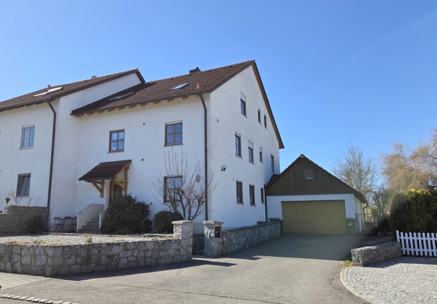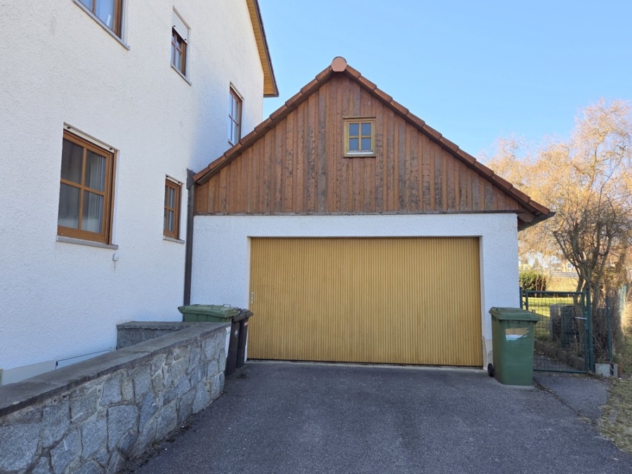 Dieses Zweifamilienhaus auf einem Erbpachtgrundstück befindet sich in einer gewachsenen Siedlung in Maxhütte-Haidhof. Das Haus ist in zwei separate Wohneinheiten aufgeteilt und verfügt über eine Doppelgarage und einen großen Garten.