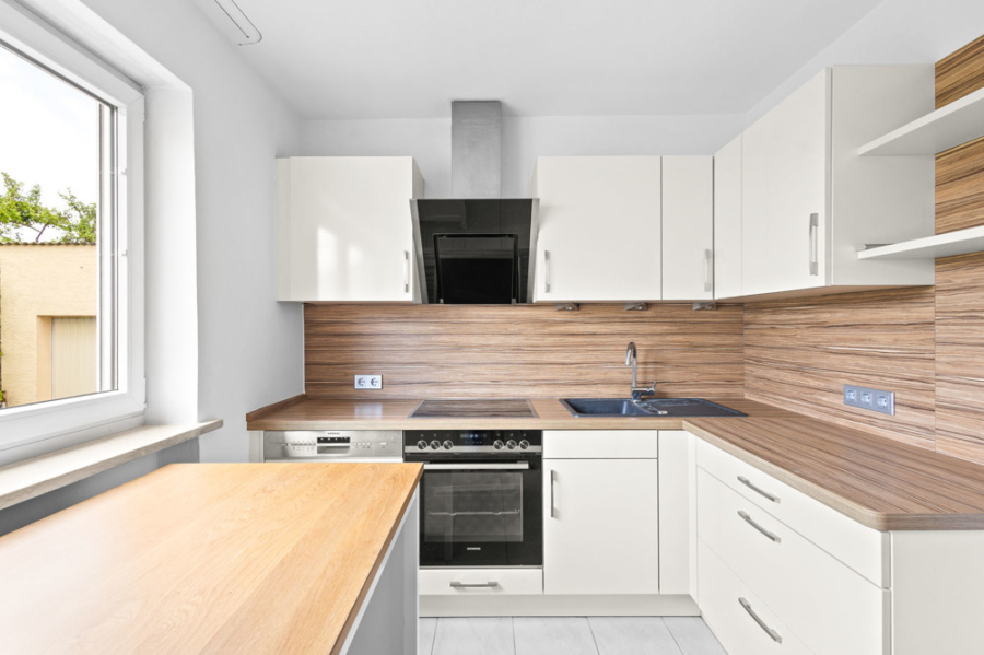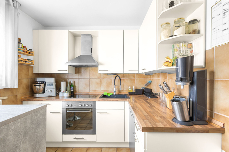 Die hochwertig ausgestattete, neuwertige Küche bietet ausreichend Platz zum Kochen und Genießen und ist sowohl funktional als auch stilvoll gestaltet.
