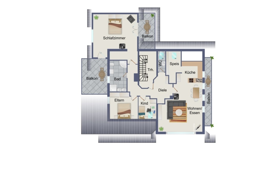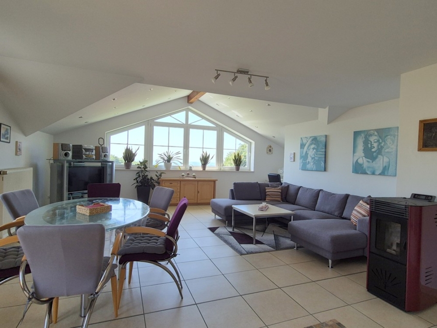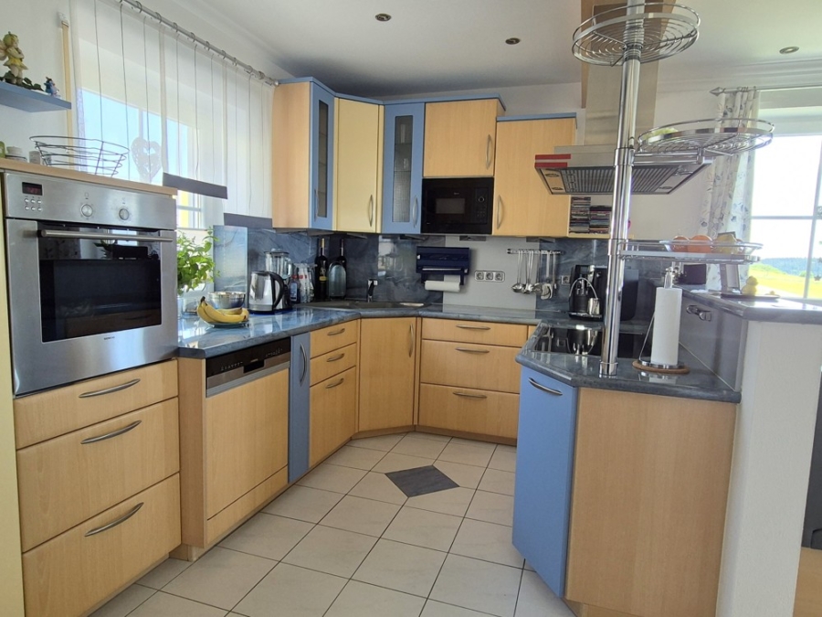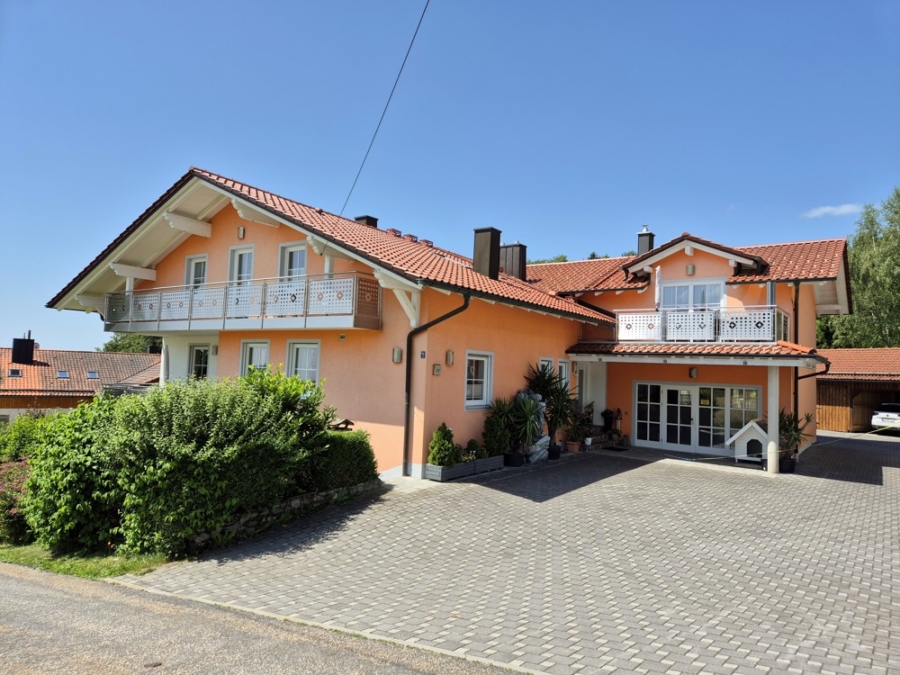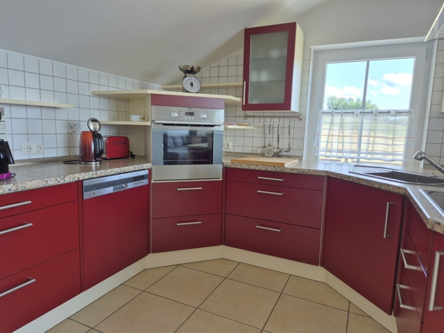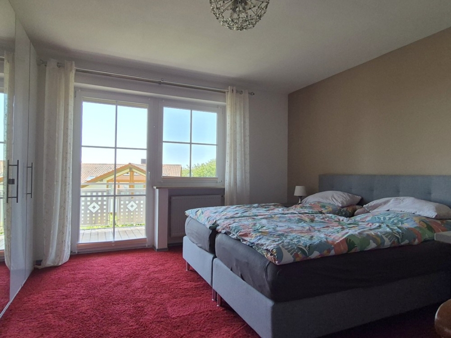 Ein echtes Kleinod ist die Wohnung im Dachgeschoss, welches erst 2008 umfassend um- und ausgebaut und zuletzt an Feriengäste vermietet wurde. Auch hier gibt es einen großzügigen Wohn-Essbereich, welcher mit einem Schwedenofen ausgestattet ist und einen wunderbaren Blick über den vorderen bayerischen Wald bereit hält. Die Küche ist ebenfalls großzügig und offen gestaltet, eine Speisekammer sorgt auch hier für den nötigen Stauraum. Ein kleiner Ost-Balkon lädt zu einem Kaffee am Morgen ein. Zurück im Flur finden Sie ein Gäste-WC vor, daran schließen sich gegenüber zwei Schlafzimmer an. Daneben befindet sich ein Tageslichtbad, welches mit einer großen Eckbadewanne sowie einer Dusche und einem Waschmaschinenanschluss ausgestattet ist. Geradewegs geht es in das Highlight dieser Dachgeschosswohnung, das mit Sichtbalken und Schwedenofen ausgestattete Schlafzimmer samt zwei Dachterrassen, eine nach Osten, eine nach Westen ausgerichtet. Somit können Sie zu jeder Tageszeit Sonne bzw. Schatten genießen – la dolce vita!