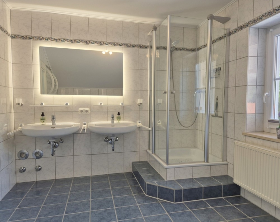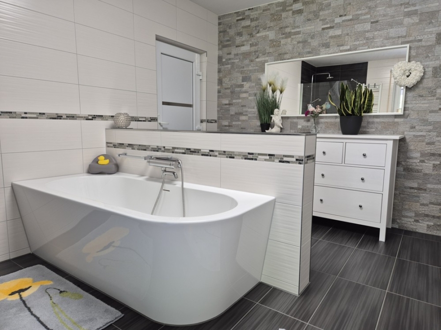 - modernes Tageslichtbad im EG mit bodentiefer Dusche und Badewanne
