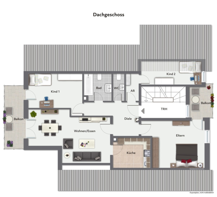 Ihre neue großzügige Wohnung befindet sich im Dachgeschoss