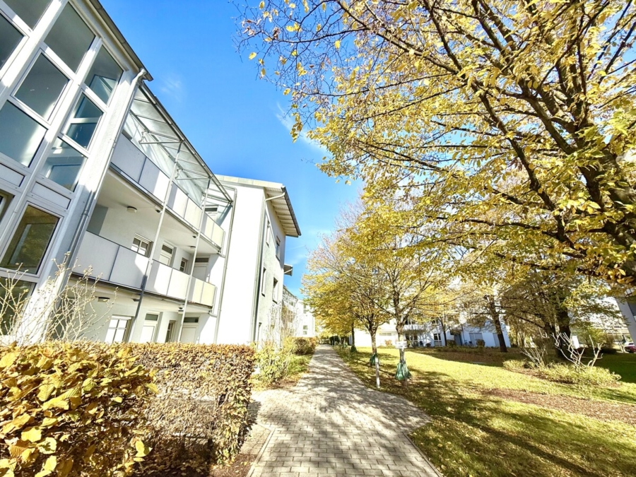 Ihre Ihnen bei 3 Zimmern circa 74 m² Wohnfläche bietende – und zeitnah frei werdende – Wohnung mit Terrasse und Garten finden Sie im Erdgeschoss – sic! – einer in den neunziger Jahren erbauten, gepflegten und von viel Grün durchzogenen Wohnanlage.