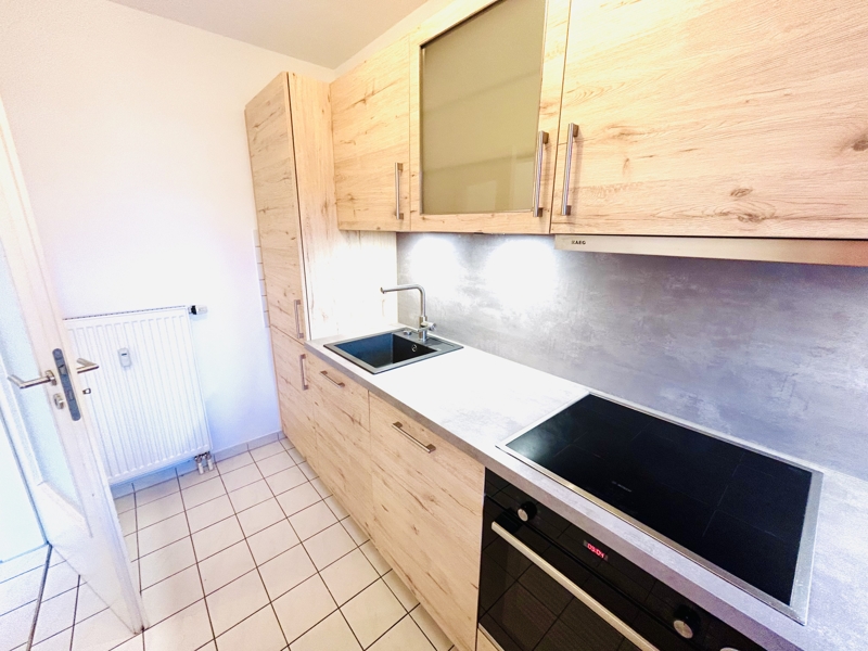 Wie auch Ihre bodenseits weiß geflieste Küche, in der Ihre erst vor ein paar wenigen Jahren neu installierte wie umfänglich ausgestattete Einbauküche mit Elektrogeräten Sie schon erwartet.