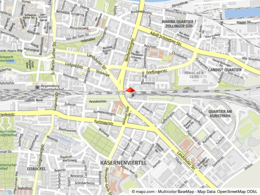 Auch die überregionale Verkehrsanbindung ist über nahe Landshuter Straße und die A3 und A93 gut gegeben.