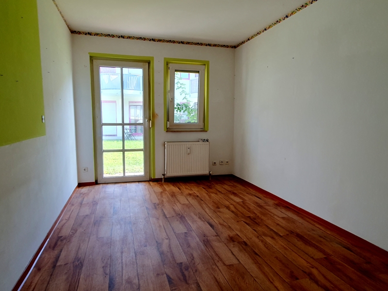 Geradewegs gelangen Sie in Ihren Wohnraum, von hier aus treten Sie auf Ihre eigene kleine Terrasse hinaus.