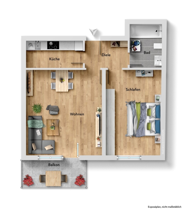 In der Diele Ihrer neuen Wohnung stehend, gehen Sie zum einen nahezu geradewegs in Ihr Schlafzimmer.