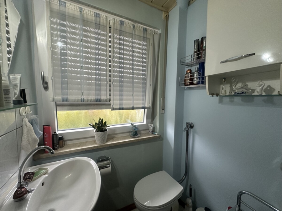 Das Schlafzimmer ist großzügig geschnitten und bietet ausreichend Platz für ein großes Bett und einen geräumigen Kleiderschrank. Das Tageslichtbad wurde 1996 vollständig erneuert und verfügt über eine Dusche, ein Waschbecken, ein WC sowie einen Anschluss für die Waschmaschine.