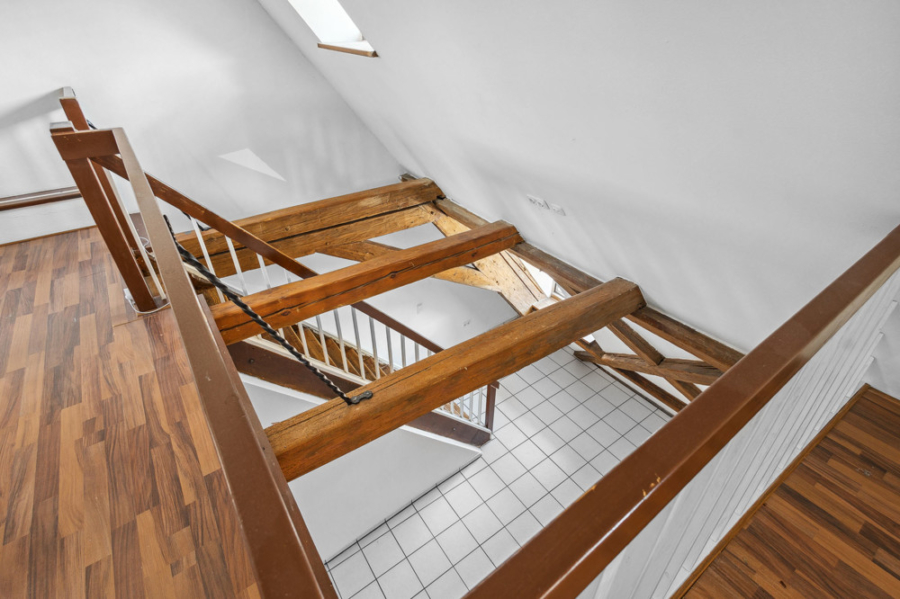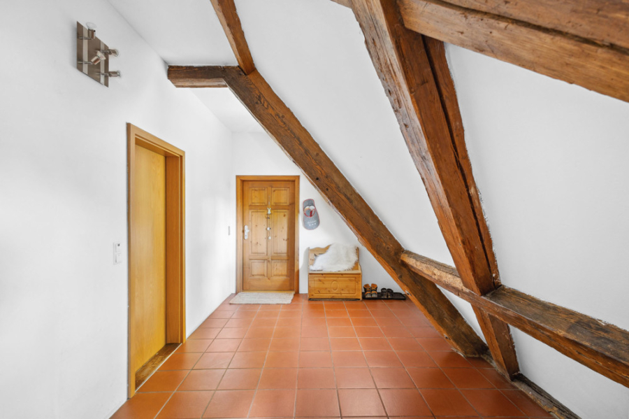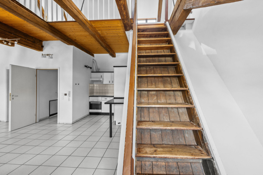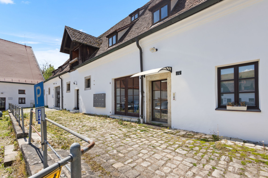 Diese befindet sich in einem ehemaligen landwirtschaftlichen Gebäude das zum Schloss Alteglofsheim gehörte. Direkt in der Nachbarschaft befindet sich die Musikschule. Das Gebäude befindet sich unter Denkmalschutz. Über eine Treppe gelangt man zu insgesamt 3 Wohnungen, hier handelt es ich um die mittlere. Im unteren Bereich befindet sich der Wohnbereich, die Küche und das Badezimmer. Über eine innenliegende Holztreppe kommen Sie in den oberen Bereich der hier immer als Schlafzimmer genutzt wurde. Ich denke den Charme der Wohnung können Sie bei einer Besichtigung am besten verspüren. Ich freue mich von Ihnen zu hören.