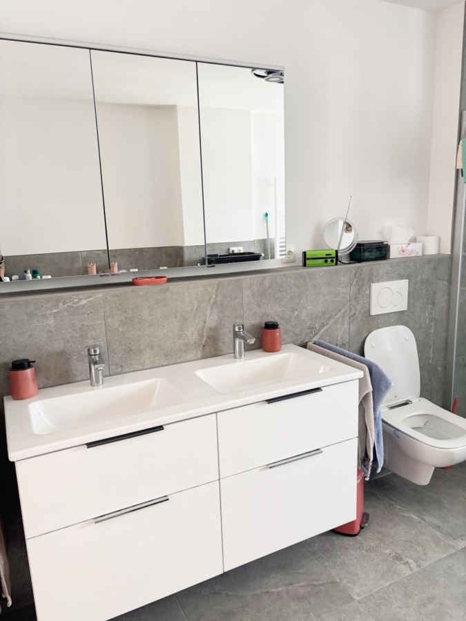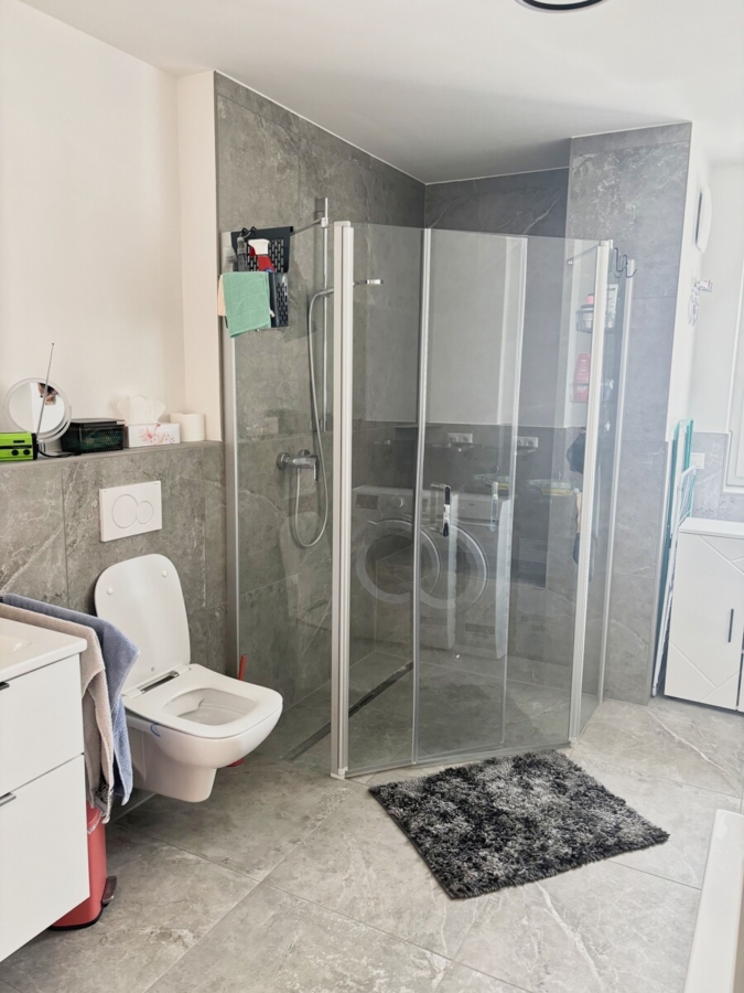 Die Wohnung punktet mit einer hocheffizienten Lüftungsanlage mit Wärmerückgewinnung, die für frische Luft und ein angenehmes Raumklima sorgt.