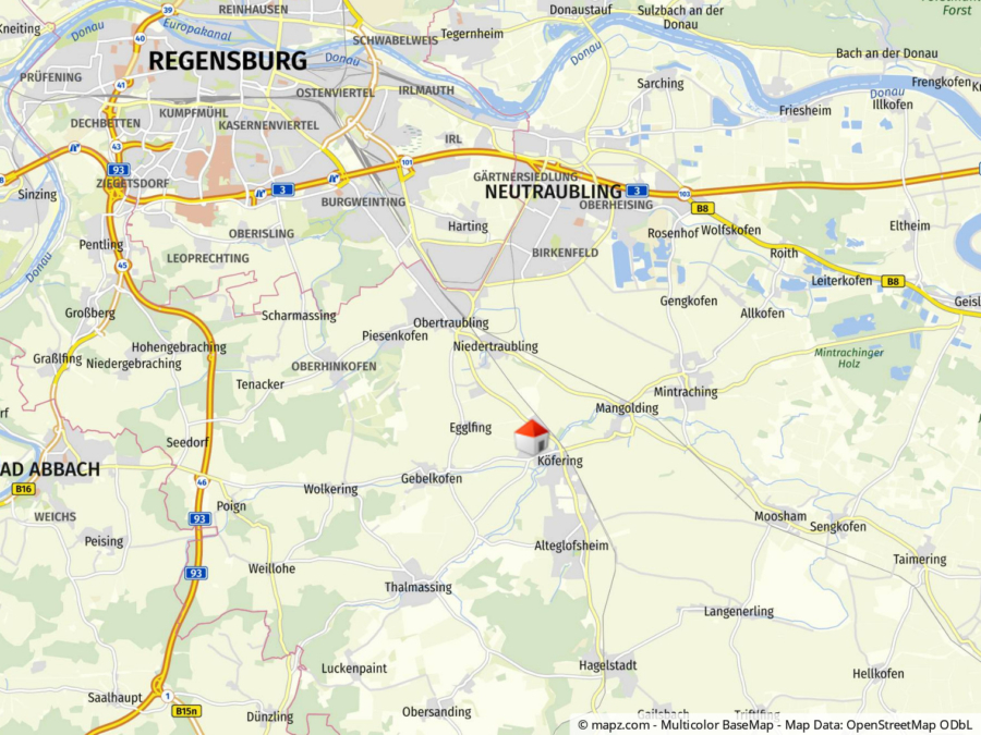 Im südlichen Landkreis Regensburg lediglich 5 Autominuten von Neutraubling mit seinen Arbeitsplätzen in zahlreichen Unternehmen wie BMW, Krones oder Osram und nur 15 Autominuten vom Weltkulturerbe Regensburg entfernt, bietet Ihnen - und Ihrer Familie - die Gemeinde Köfering alle notwendige Infrastruktur für Gesundheit und Einkauf ebenso vor Ort, wie Kindergarten und Grundschule.