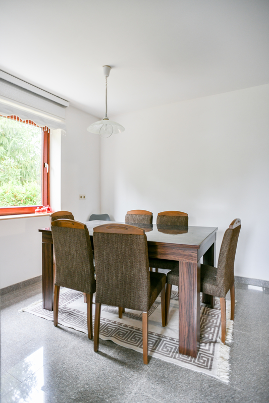 Über die Diele gelangen Sie nun zum Esszimmer mit anschließender Küche, welche gegen eine Ablöse zu erwerben ist.