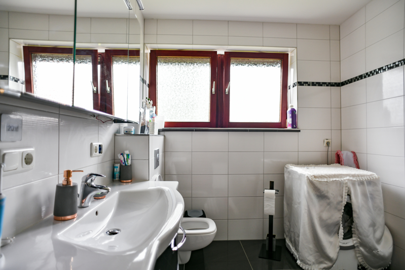 Linker Hand befindet sich sowohl das Bad mit Dusche und WC, als auch das angrenzende separate Gäste-WC.