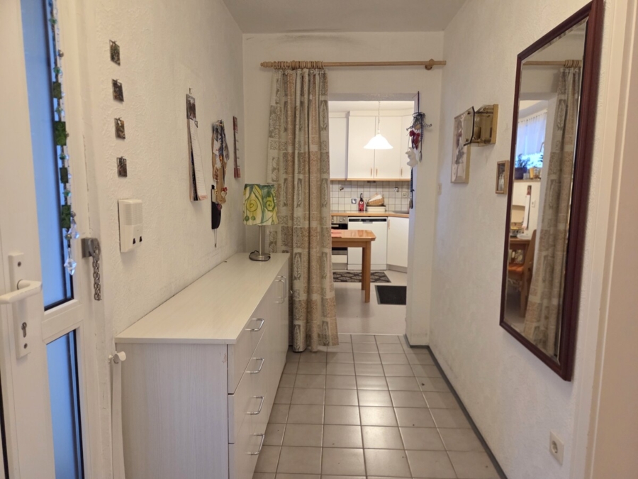Sie kommen bequem mit einem Aufzug auf Ihre Etage – ein Arkadenzugang führt in Ihre gepflegte Drei-Zimmer-Wohnung. Vom Flur aus gelangen Sie linker Hand in Ihre Wohn-Ess-Küche. Die Einbauküche ist Teil des Immobilienangebots und wird samt der Elektrogroßgeräten verkauft. Rechter Hand des Flures gelangen Sie in Ihr Tageslichtbad, welches mit einer Dusche ausgestattet ist. Daneben befindet sich das Schlafzimmer.