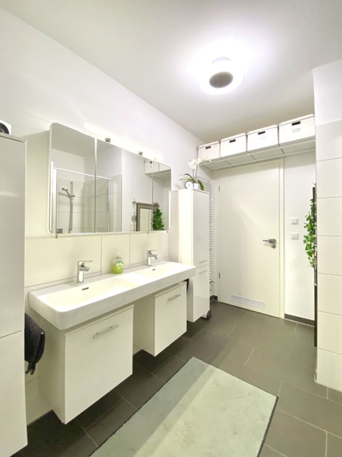 Zur Wohnung gehört ein hochwertiges Kellerabteil sowie ein sicherer Kfz-Stellplatz in der sehr großzügig bemessenen und komfortabel zu befahrenden Tiefgarage (gegen Aufpreis). Der Tiefgaragenstellplatz verfügt über eigene Stromversorgung und wurde bereits mit einer modernen Wallbox (E-Auto-Ladestation) ausgestattet.