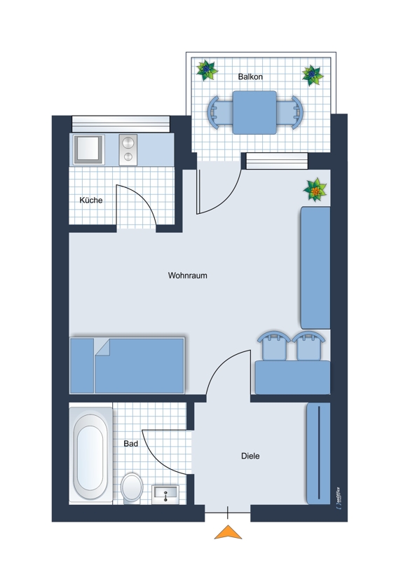 Das Ein-Zimmer-Appartement befindet sich im 1. Stock einer Wohnanlage im Regensburger Osten. Sie betreten die Wohnung über eine Diele. Linker Hand befindet sich ein Badezimmer samt Badewanne. Geradeaus gelangen Sie in Ihren hellen Wohnraum mit Zugang zum Süd-Ost-Balkon. Die Küche findet in einem separaten Raum samt Fenster Platz.
