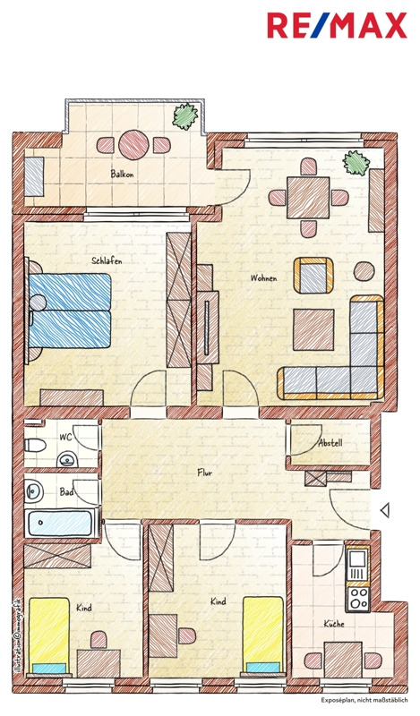 Auf ca. 100,2 m² finden Sie hier die schöne 4 Zimmer Wohnung mit einem gut durchdachten Grundriss vor.
