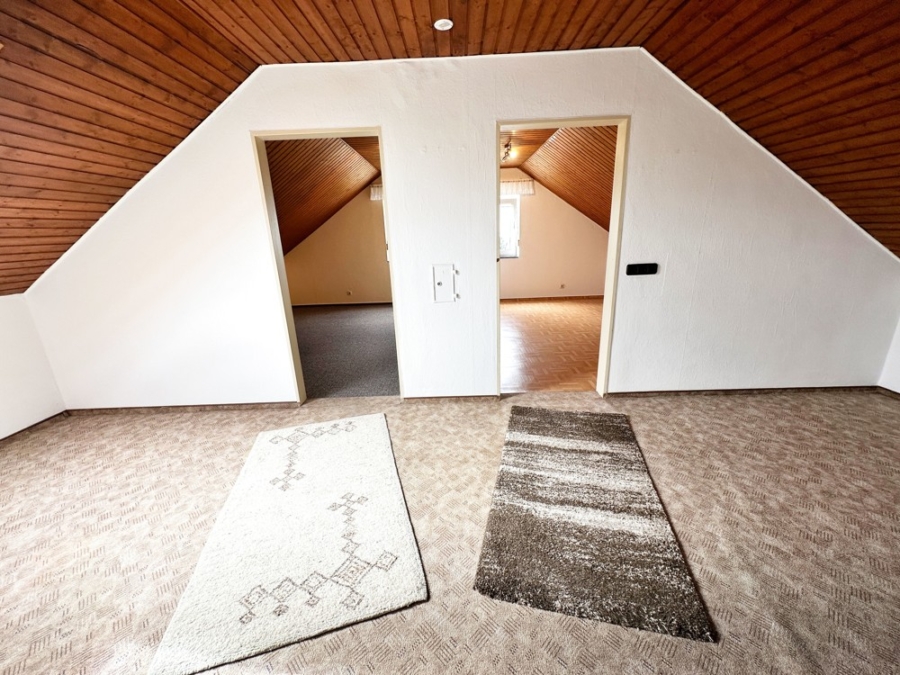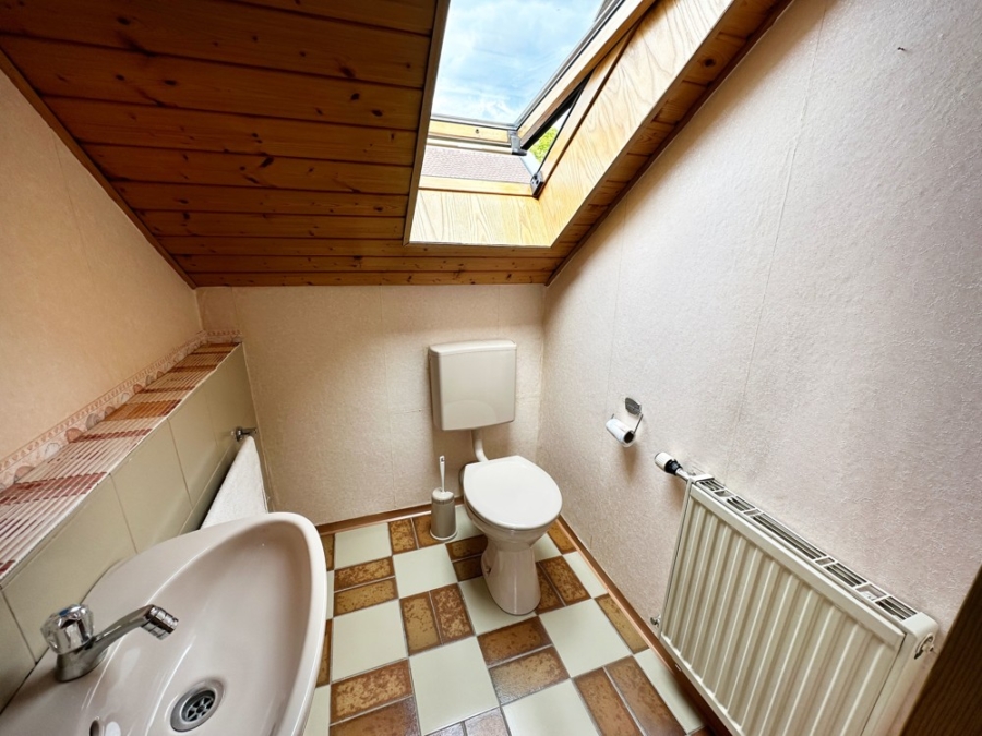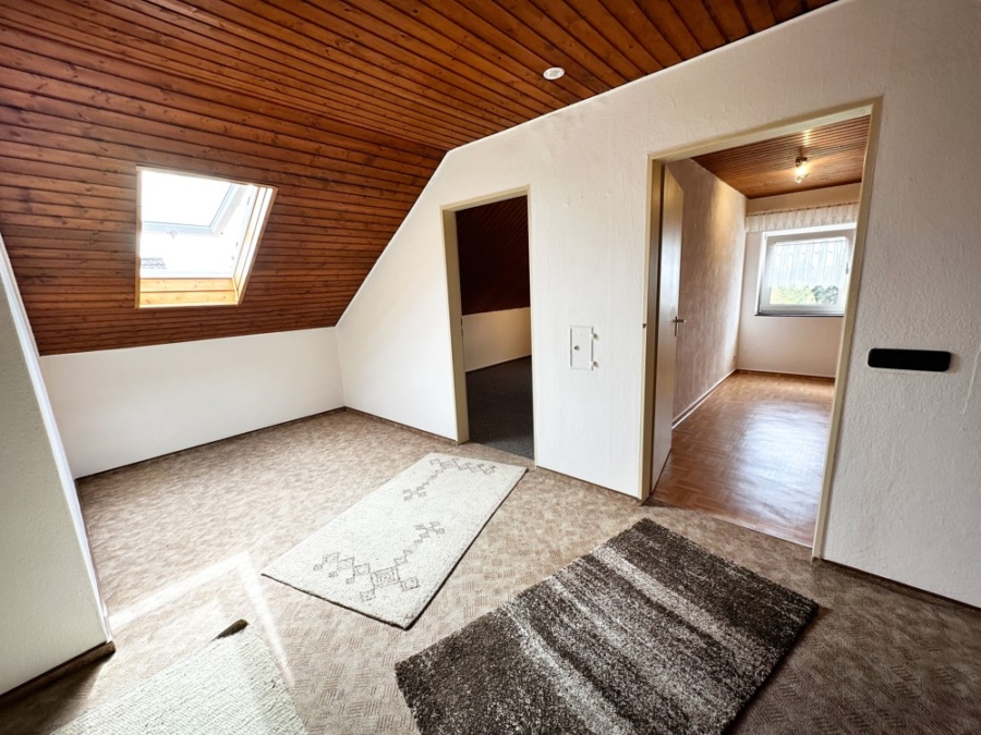 Über das Treppenhaus Ihre zweite Ebene im Dachgeschoss betretend, führt eine große Wohndiele Sie in zwei weitere Räume und ein Gäste WC.
