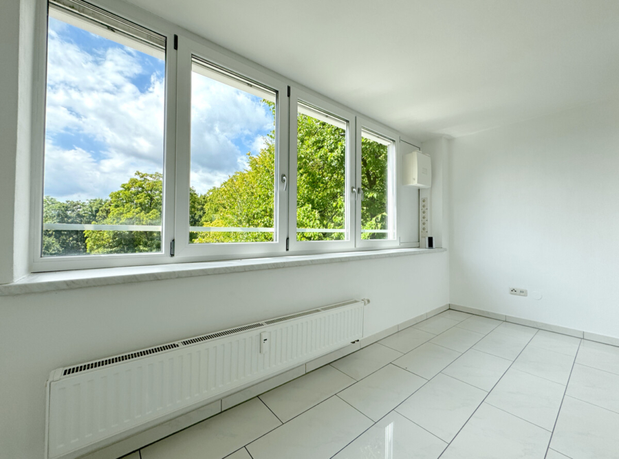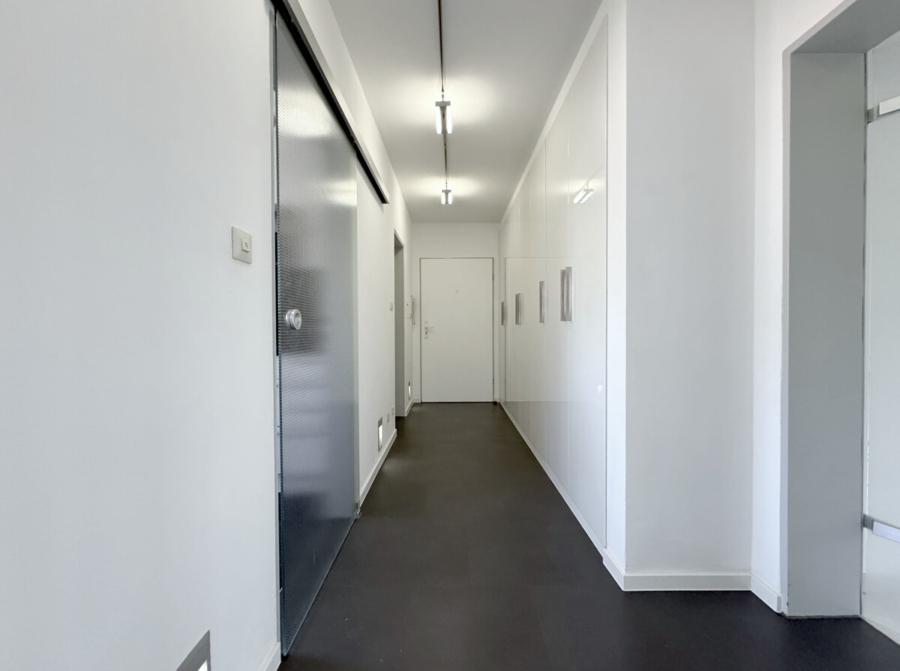 Ihre Wohnung betretend empfängt Sie Ihr einladender Flurbereich mit modernem Einbauschrank. Rechter Hand gelangen Sie in Ihr Badezimmer mit Fenster, großer Dusche und Bidet.
