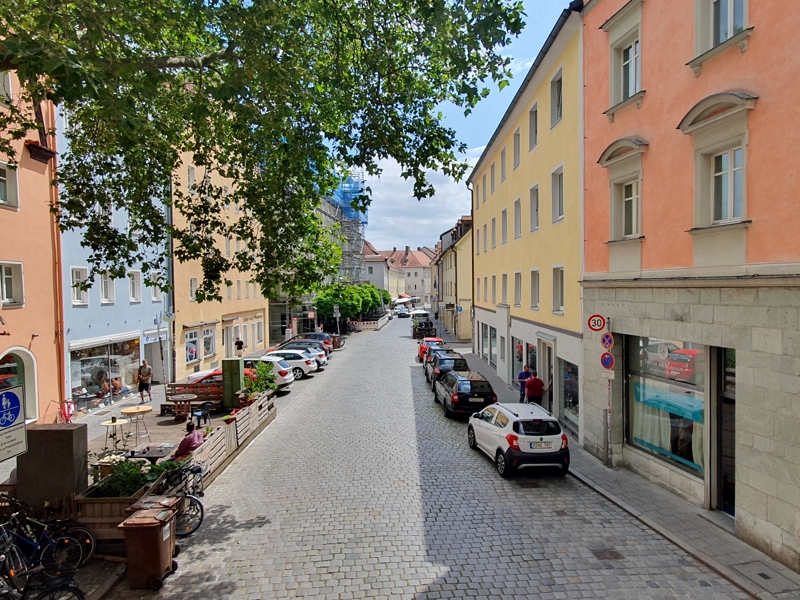 Die Wohnung befindet sich im Herzen der Regensburger Altstadt und besticht durch ihre besondere Lage. Fernab von den klassischen Strömen der Fußgänger, Touristen und Nachschwärmer befindet sich diese Wohnung erhaben am Beginn der Obermünsterstraße und bietet somit einen wunderbaren Blick auf dieses beliebte Stadtviertel. Kurze (Fuß-)Wege zu allen Dingen des täglichen Bedarfs - von Supermärkten über Ärzte bis hin zu Schulen - sind hier garantiert. Auch die öffentlichen Verkehrsmittel sind durch den Busbahnhof und den Hauptbahnhof fußläufig erreichbar.